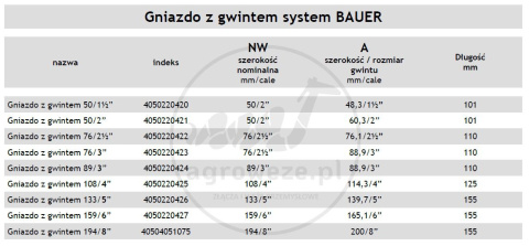 Gniazdo Bauer 159/6” z gwintem zewnętrznym