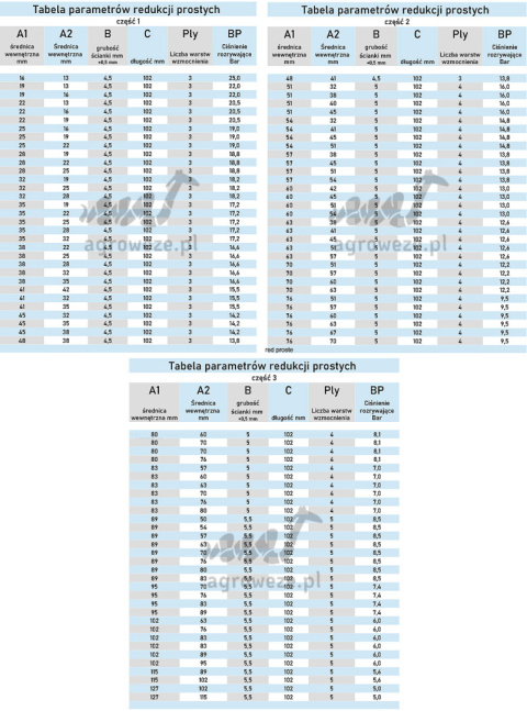 Rozmiary od 6 mm do 48 mm = 3 warstwy wzmocnienia