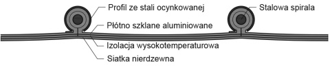 Ścianka wykonana z aluminiowanego płótna szklanego, wzmocniona siatką nierdzewną z dodatkową termoochronną warstwą.